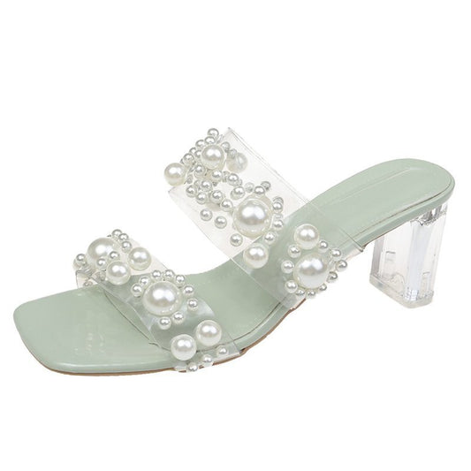 Korean Style Crystal Heel High-heel Sandals And Slippers