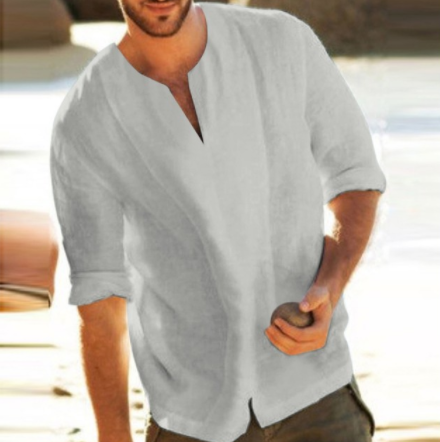 Foreign Trade New Style Summer Casual Thin Section Men'S Solid Color Cotton And Linen Five-Point Sleeve T-Shirt For Men