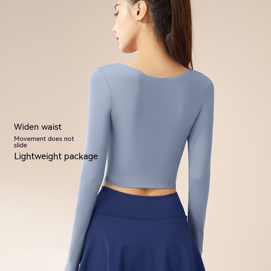 Contrast Color Fast-drying Workout Top Slim Fit Nude Feel Seamless Yoga Long Sleeve