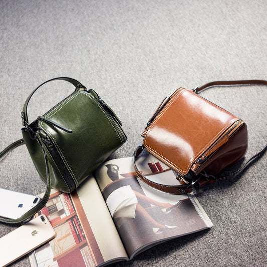Leather bags wholesale 2021 Korean style new oil wax leather fashion all-match portable Shoulder Messenger Bag