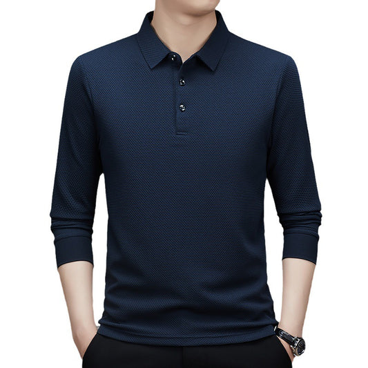 European And American Men's Long-sleeved T-shirt Polo With Lapel