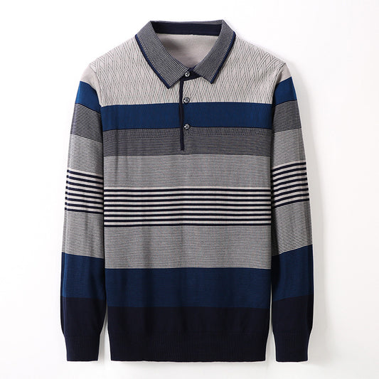 Men's Short Sleeve T-shirt Lapel Striped Middle-aged Dad T-shirt Knitted T-shirt