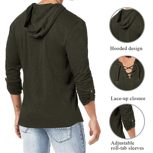 V Neck Outdoor Loose Shirt Men Hooded T-Shirt
