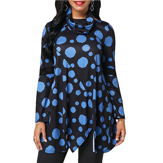 Fashion Autumn And Winter Stitching Irregular Long Sleeve T-shirt For Women