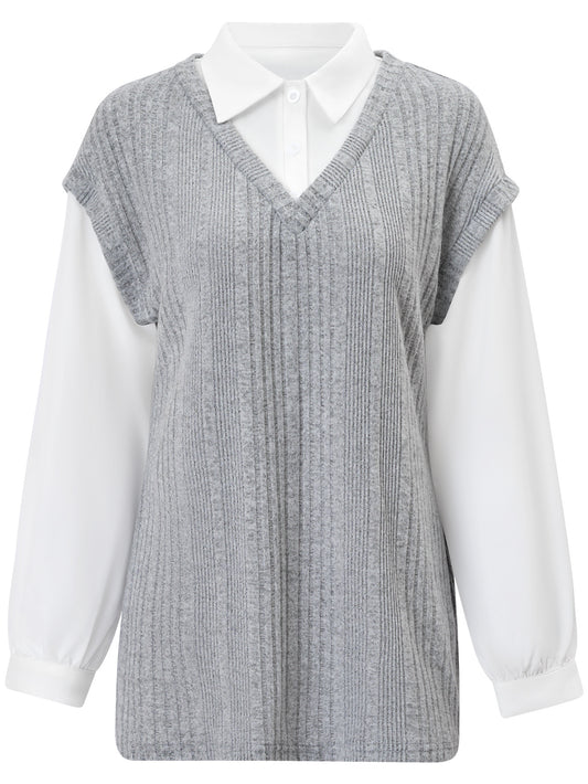 Casual Solid Color False Two-piece Slim Top For Women
