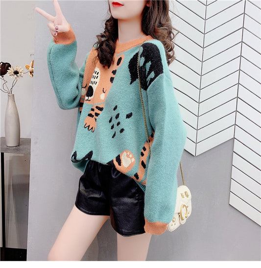 Cashmere Sweater College Style Korean Style Loose And Lazy Style Round Neck Top