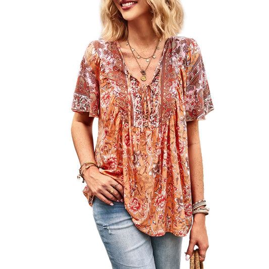 Asian Printed Shirt Women's Commuter Casual Collar Top