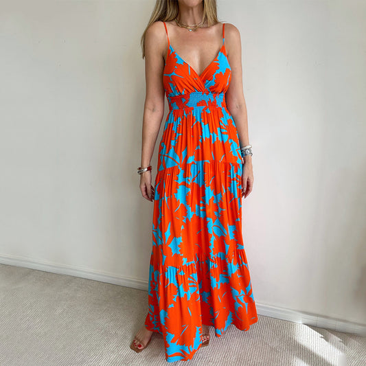 Women's Fashionable Printed Long Slim-fit Suspender Dress