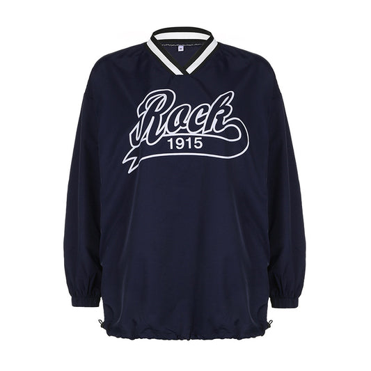 American Letter Print Contrast Color Striped Small V-neck Loose Sweater