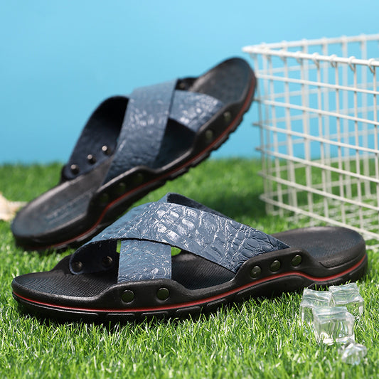 First Layer Cowhide Men's Sandals Beach Shoes Non-slip Slippers