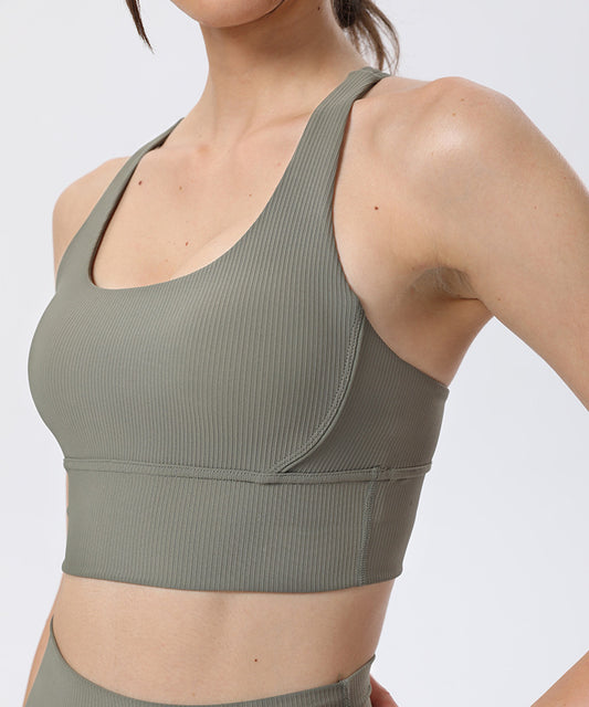 Rib Nude Feel Yoga Bra Sports Underwear Cross Beauty Back Thread Sports Bra For Women