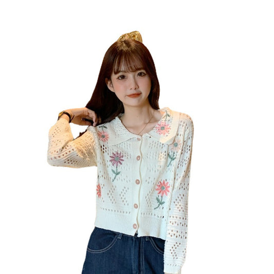冬季新款優雅修身鏤空修身短版長袖上衣女