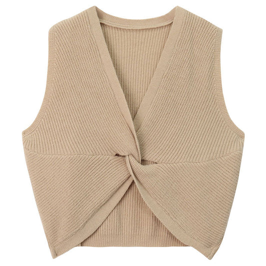 新款女用凹條紋羈扣針織套頭V領修身長袖T卹
