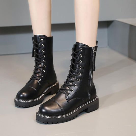 女款冬季天鵝絨時尚平底中筒靴棉鞋
